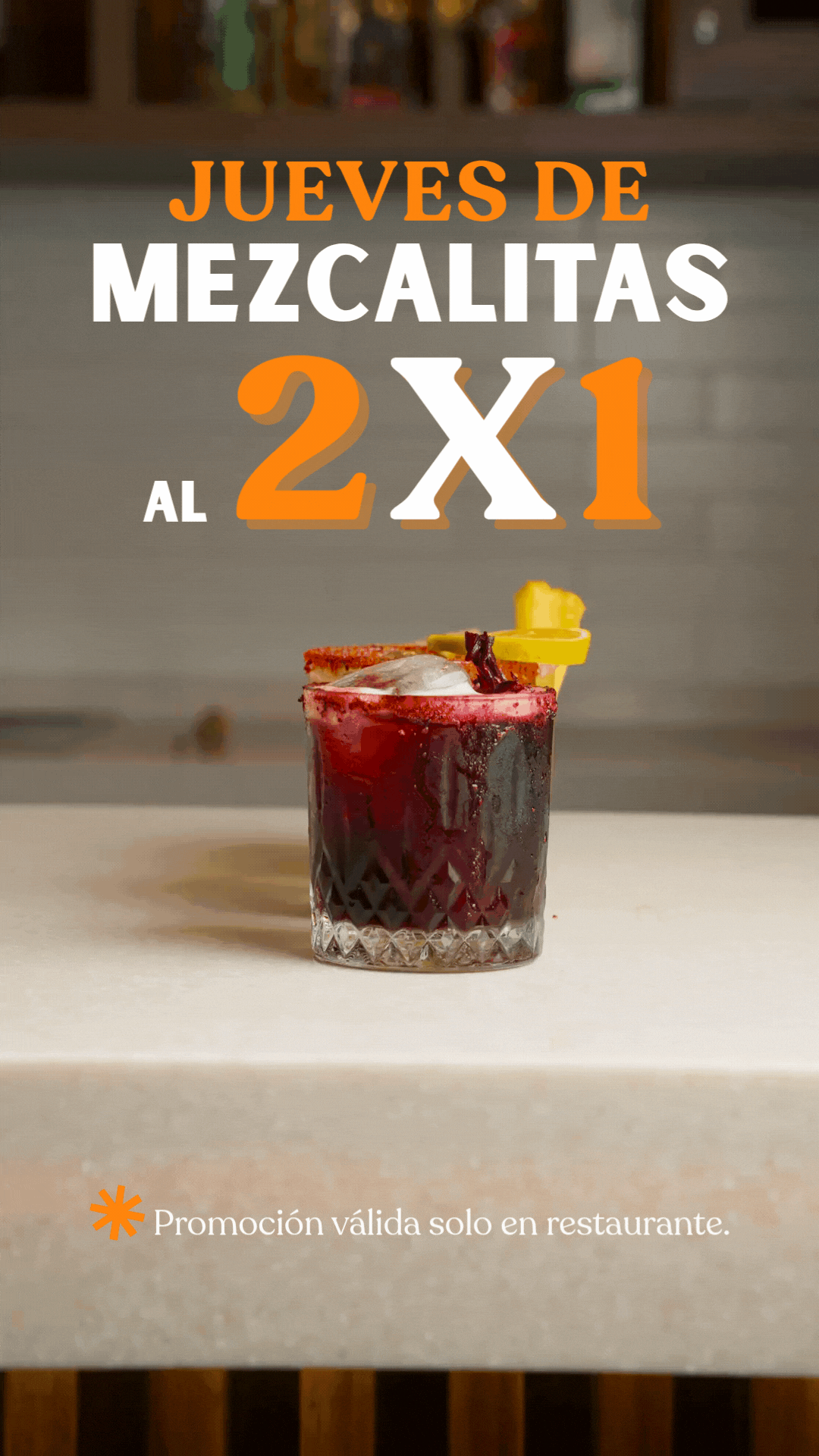 Promo jueves restauranteMezcalitas al 2×1 *Promoción solo válida para mayores de 18 años y en consumo de alimentos.