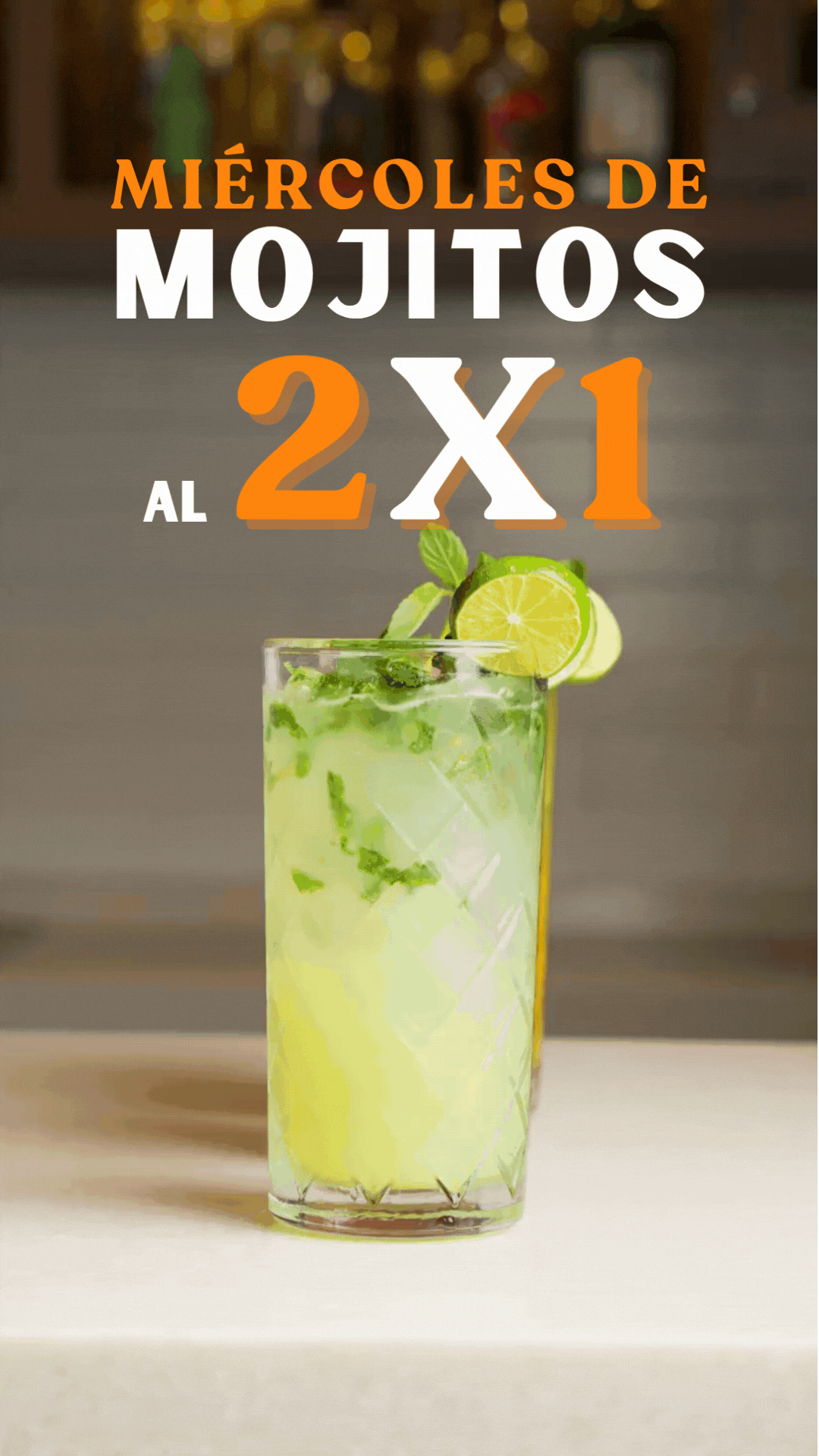 Promo miércoles restaurantesMojitos al 2×1 *Promoción solo válida para mayores de 18 años y en consumo de alimentos.