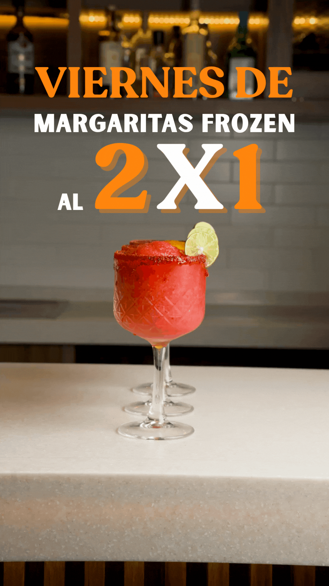 Promo viernes restauranteMargaritas enchiladas frozen al 2×1 *Promoción solo válida para mayores de 18 años y en consumo de alimentos.